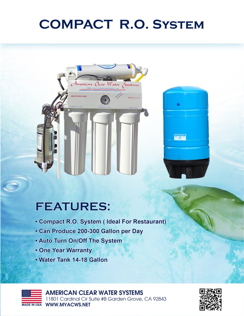 Reverse Osmosis is a state of the art filtration technology that uses semi permeables membrane to separate dissolved solid substances from your water inflow. Decreasing these solids, as well as turbidity, and organic substances will increase the efficiency and life span of your water appliances and pass on substantial savings. Choose a versatile premier quality commercial reverse osmosis and drinking water system for your business. Treat tap and well water with low energy consumption and low maintenance.