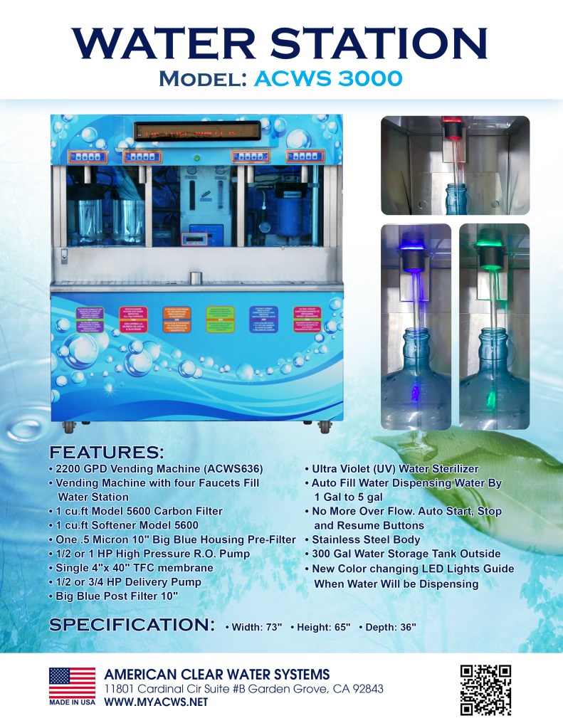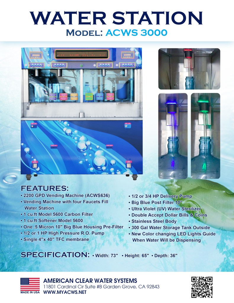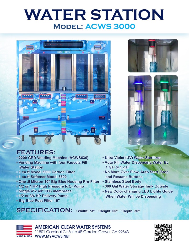 Water Stations Vending Machines: Exp: Model ACWS 636 & ACWS 3000: